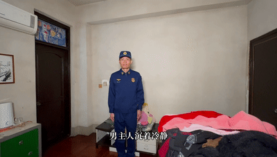 来到门边后,男主东说念主感受到一股很高的热气,莫得取舍盲目开门冲出去,而是保执迟滞,回身将电闸关掉,并跑进茅厕将煤气瓶阀门关掉。同期带着太太和女儿璧还到卧室,打湿被单、毛巾,关紧阳台的门。随后,三公他们用湿毛巾捂住鼻子,用湿被单、湿毛巾堵住两侧门的门缝。