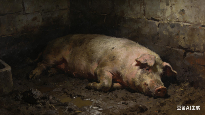猪是色调缺少的动物。它们不会哭,不会慨气,不会写日志。当一头猪静静地躺在泥泞里,意见贫乏,咱们可能会说:“它在休息。” 但要是一个东说念主一样躺在狼藉的房间里,一动不动,咱们会说:“他在抑郁。”