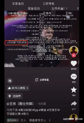 近日,别称账号名为“王伟(胜仕传媒)”的百万粉丝博主发布视频,自称曾于2020年获“沈阳文旅执行大使荣誉名称”,激发争议。