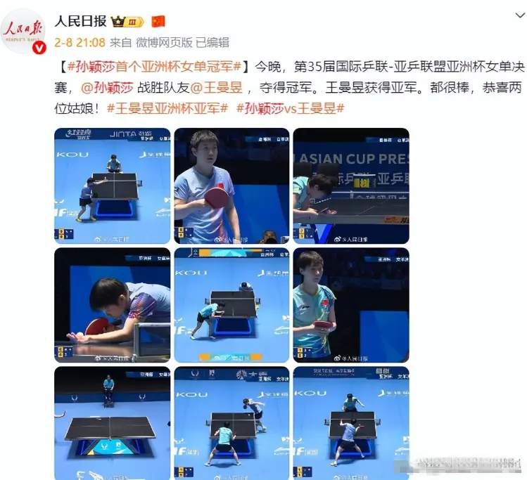 顺利拿下了亚洲杯奖杯,可这离过年不到3天,东说念主民日报点名孙颖莎,暴浮现“真实处境”,误解太深!