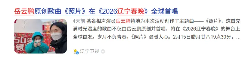 2026 辽宁卫视春晚以团圆与关心为中枢基调,节目兼顾笑剧、歌舞、互动等多种花式。岳云鹏以双重身份参与晚会,一是与唐国强搭档参与串场互动,承担部分主握衔尾功能;二是带来原创歌曲《像片》的民众首唱,两种阐述均赢得正面响应。