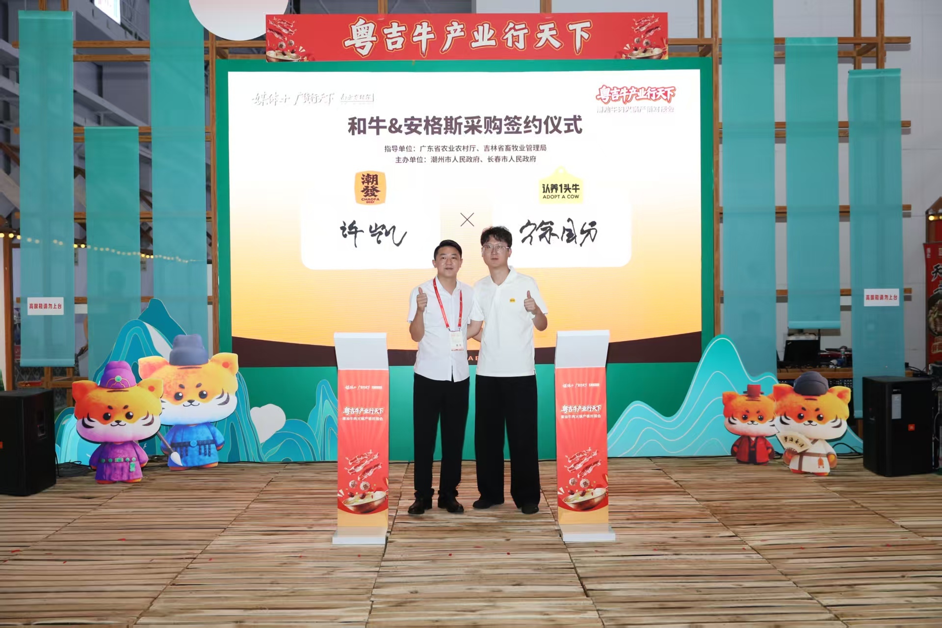 广东潮牛生意有限公司与吉林省长春皓月清真肉业股份有限公司签约。