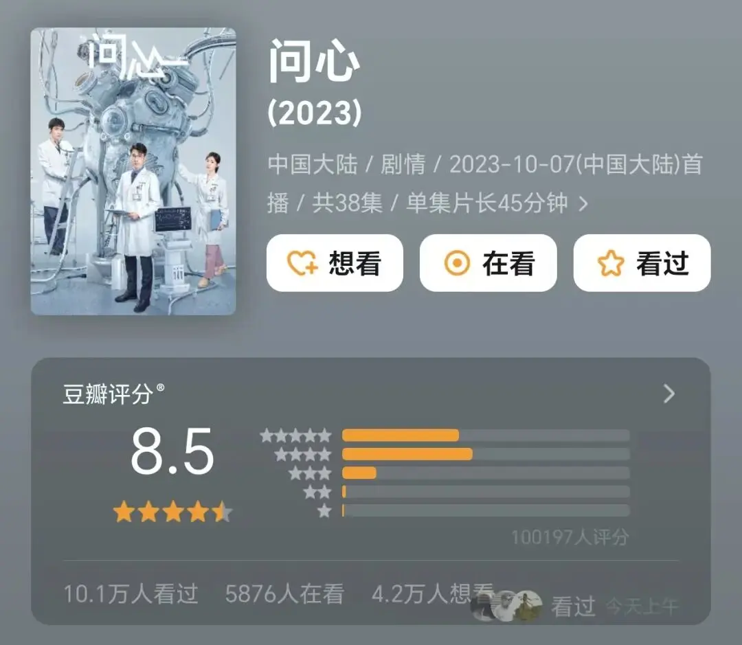 就像《问心》的口碑照旧挺可以的,豆瓣上有8.5的评分呢!